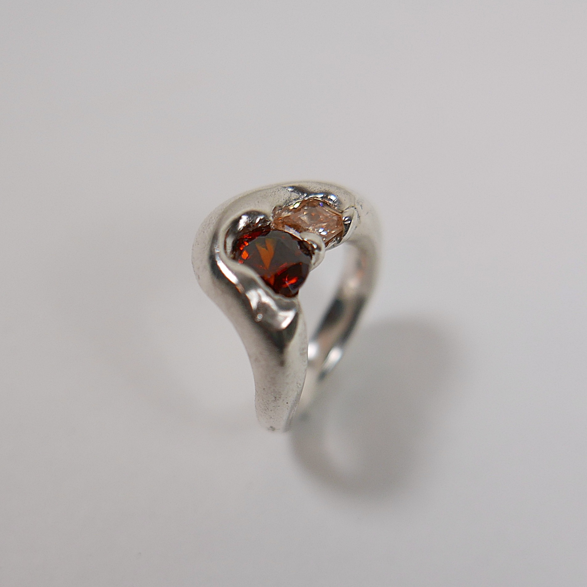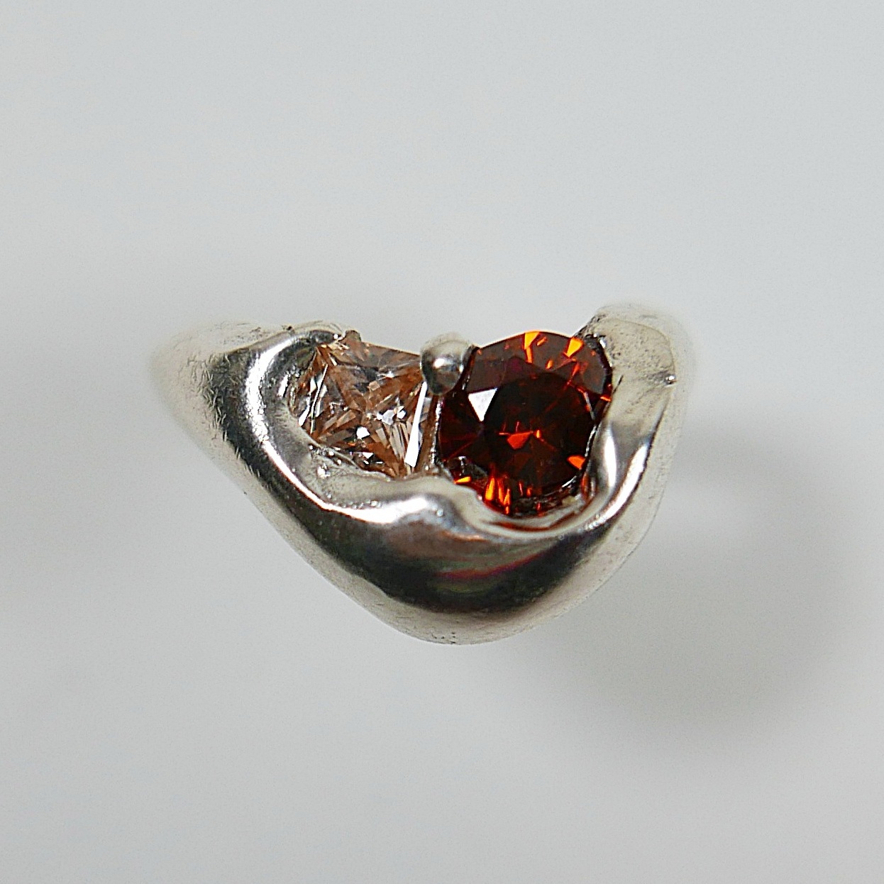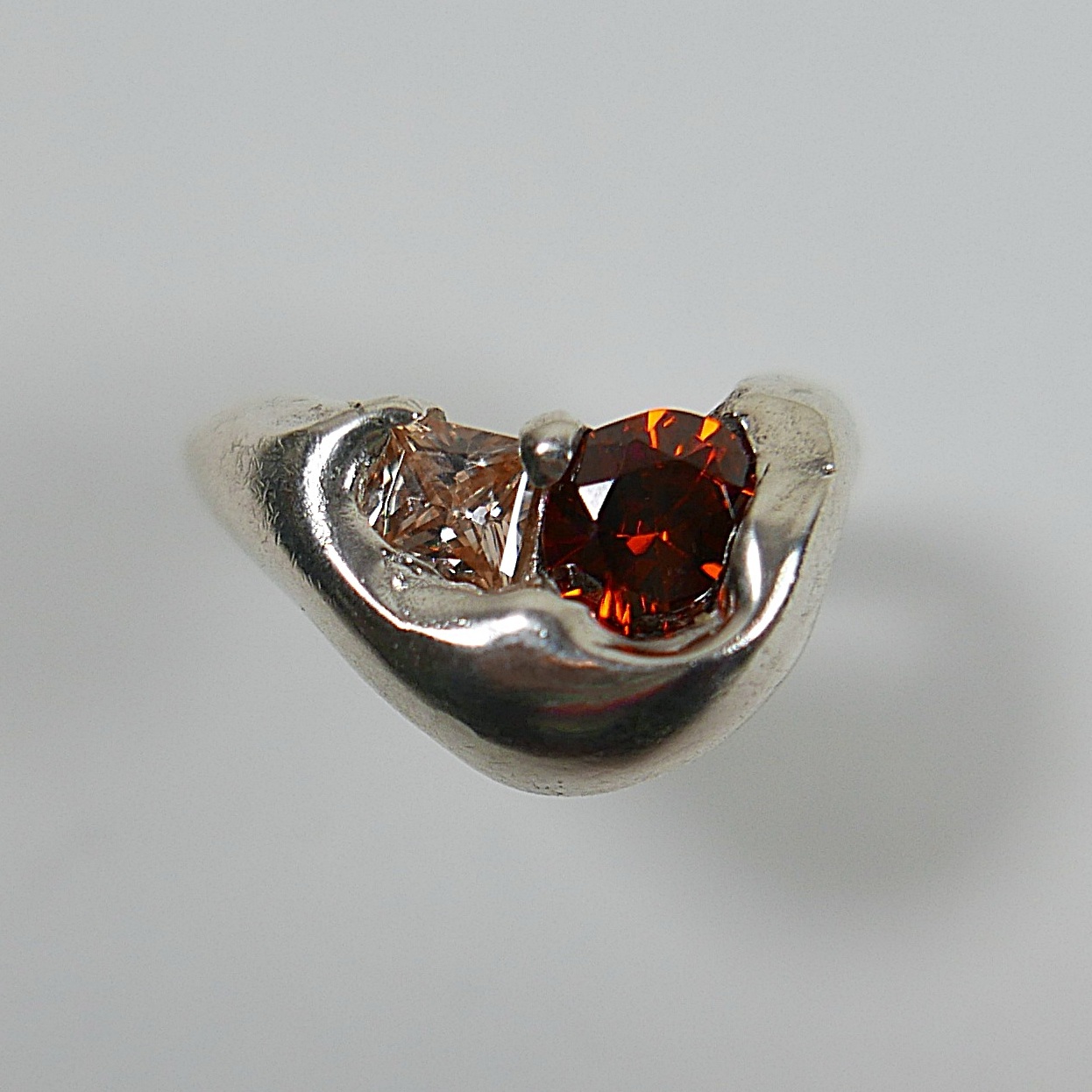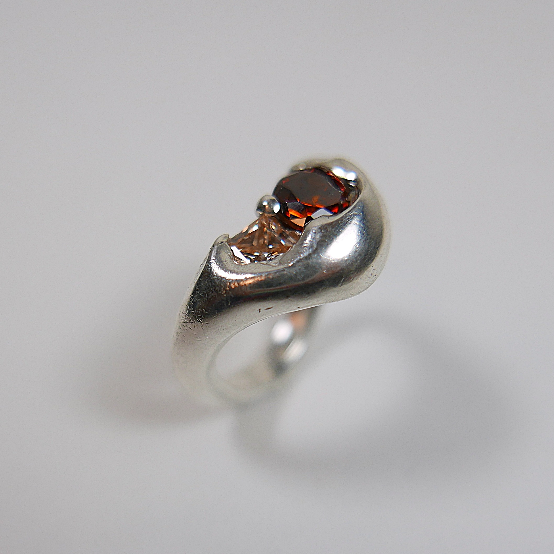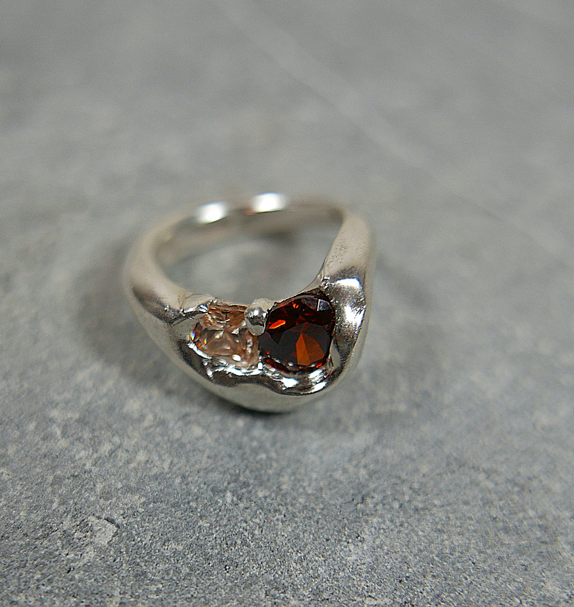 Unique ‘chunky’ ring set with two synthetic brown zircons in sterling silver.